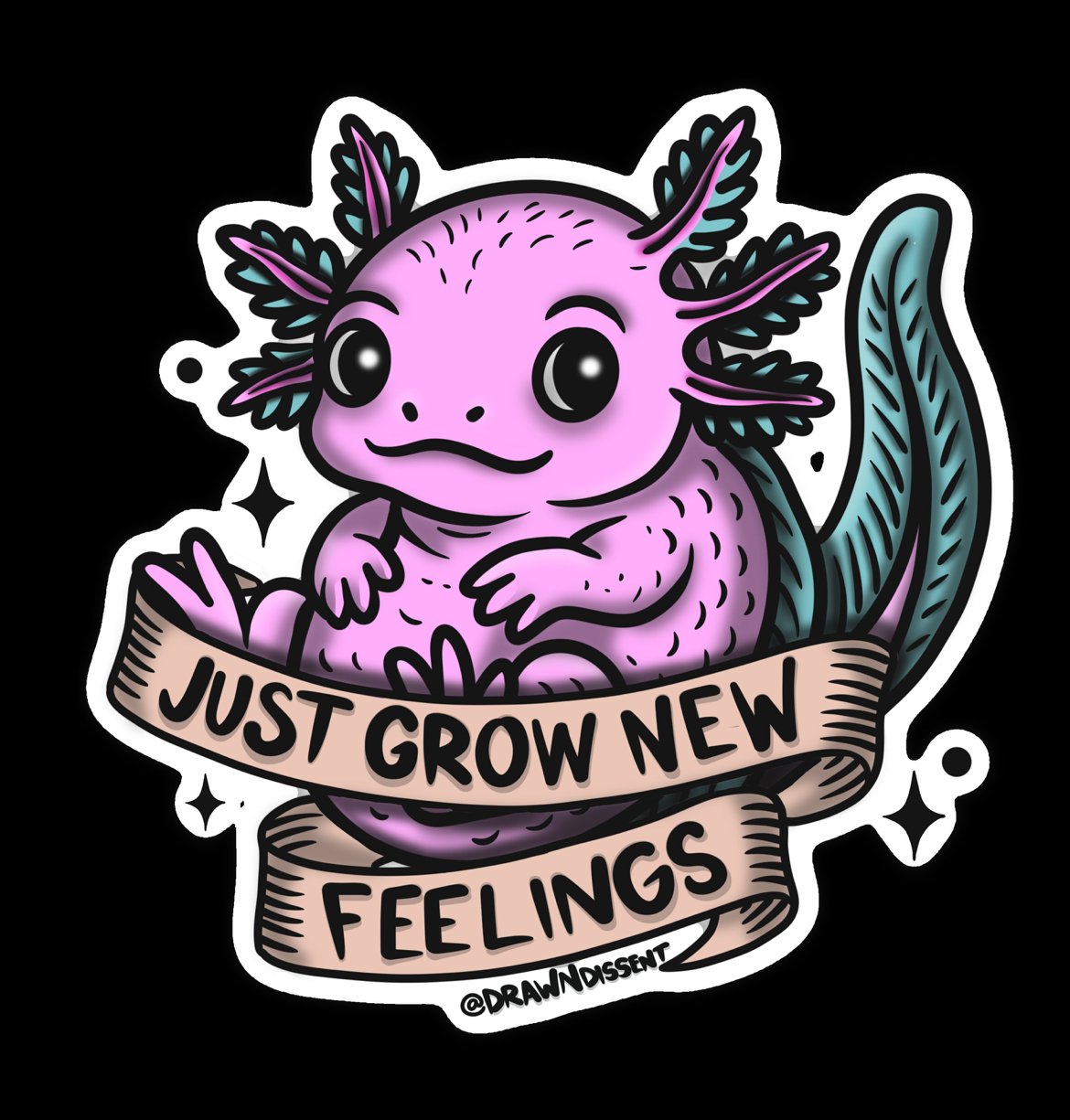 From the Unstable Environment sticker set comes this soft, squishy lil axolotl, the patron saint of emotional regeneration and pretending everything’s fine. Pink, precious, and biologically unbothered, they offer the world’s worst (and most relatable) coping strategy: if your feelings are broken… just grow new ones.