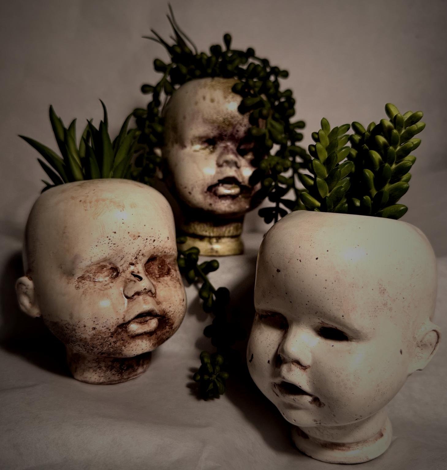 Witness – Handmade Distressed Baby Head Planter | One of a Kind Gothic Decor